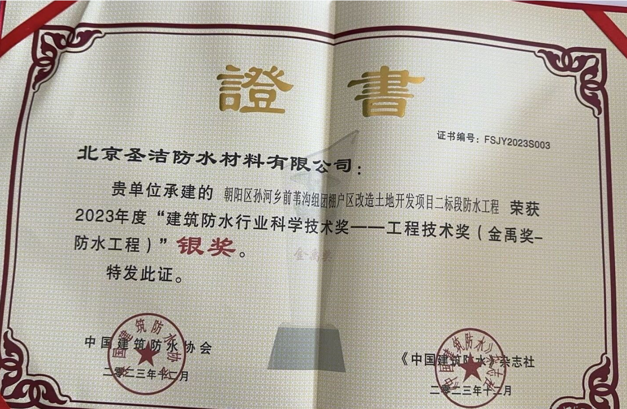 • 2023年度建筑防水行業科學技術獎--工