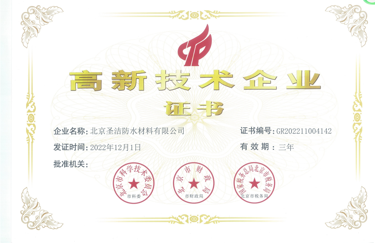 北京圣潔防水材料有限公司成立于1999年,注冊資金2.53億元。致力于系統解決防水問題的探索和研究,經過二十多年的積累與沉淀,圣潔防水已發展成為集產品研發、生產、銷售、施工于一體的規模化公司,是中國防水二十強企業,擁有國家專業防水一級資質。 圣潔防水生產基地占地面積2萬平米,全體員工320人,其中施工人員280人,為員工提供五險保障,公司是中國建筑防水協會常務理事單位、中國建筑業協會建筑防水分會、中國建筑學會、中國質量檢驗協會建材專業委員會會員單位,通過了ISO9001國際質量體系認證、ISO14001環境管理認證。被中國建材市場協會譽為“全國建材系統質量、服務、信譽AAA企業”。歷年國家標準《地下工程防水技術規范》、《地下防水工程質量驗收規范》和《屋面工程技術規范》、《屋面工程質量驗收規范》的參編單位,截至目前為止,圣潔防水主編或參編的國標、行標、地標、團標已達106本。