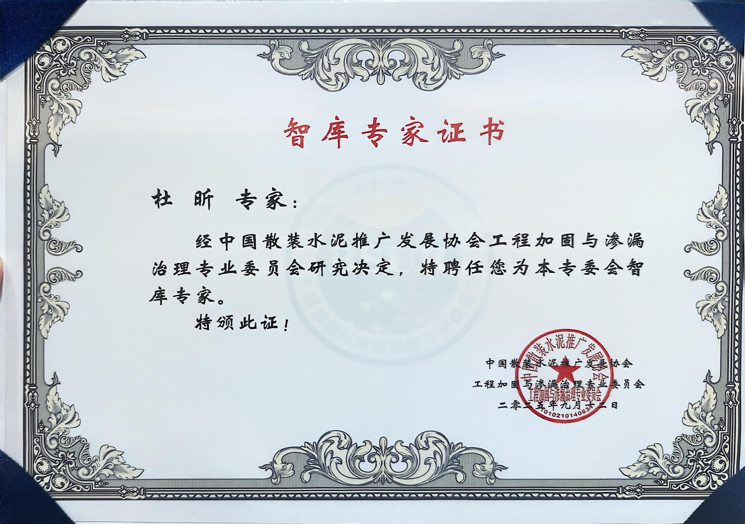 • 杜昕中國工程滲漏治理專家證書